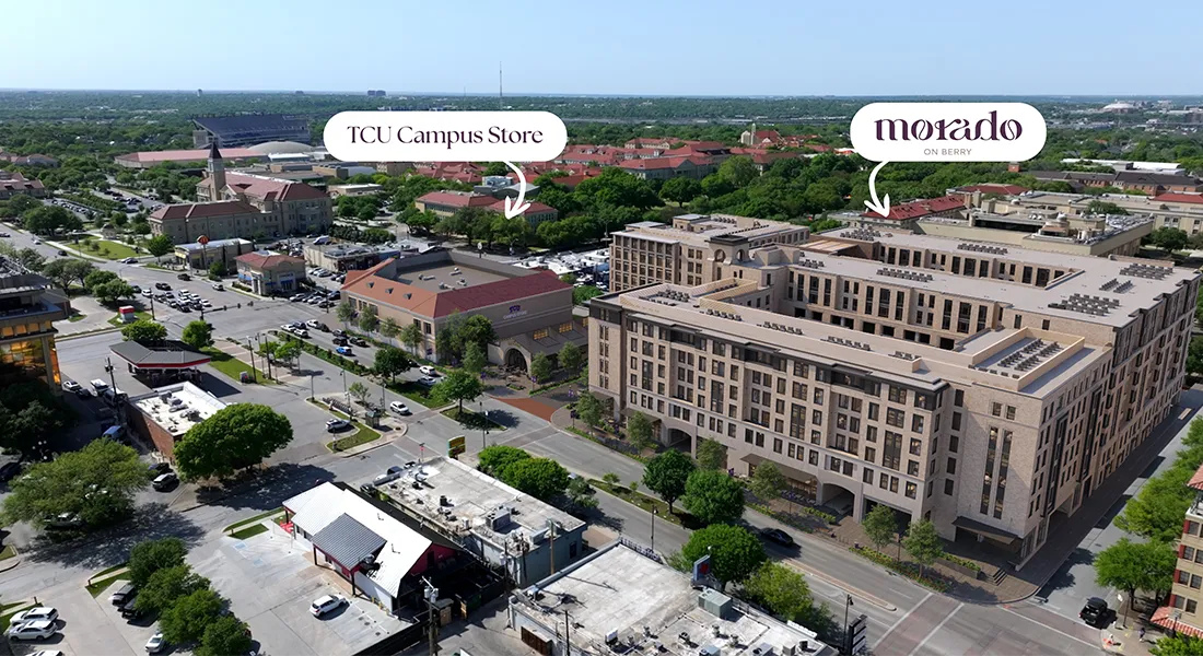 Conveniently located on Berry Street, just steps from the TCU campus, Morado on Berry is where elevated design meets student lifestyle. This boutique community of 234 units blends modern design with amenities made for real student life. Think outdoor screens for game days, a Pilates studio for your reset, and study spaces that actually make you want to grind. With refined interiors and thoughtful touches at every turn, Morado on Berry is the kind of place you’ll love coming home to—you may not ever want to leave.